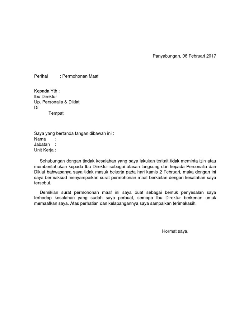 ٨ ذو القعدة ١٤٤٣ هـ. Namun sebagai karyawan yang bertanggung jawab, sudah seharusnya memohon maaf atas kesalahan. Meminta maaf kepada atasan atas suatu kesalahan pasti berbeda dengan ke sesama pekerja.